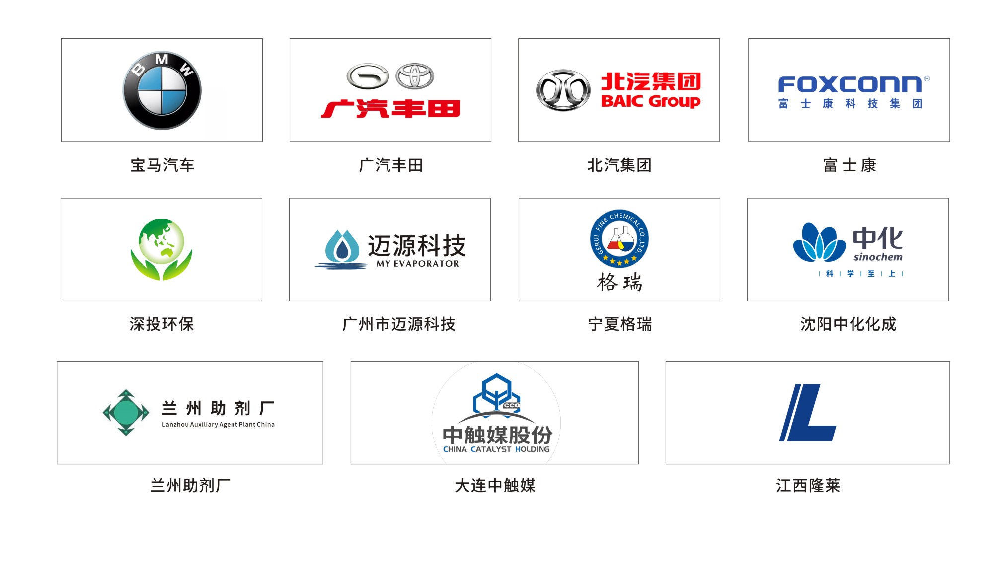 目前,公司已在成都、大連、蘇州、內(nèi)蒙古等地設立了辦事機構(gòu),服務的客戶包括深投環(huán)保、寶馬汽車、富士康、廈門嘉戎、寧夏格瑞,蘭州助劑廠、江西隆萊、大連中觸媒等行業(yè)內(nèi)領頭企業(yè),在國內(nèi)落地項目有170多家。